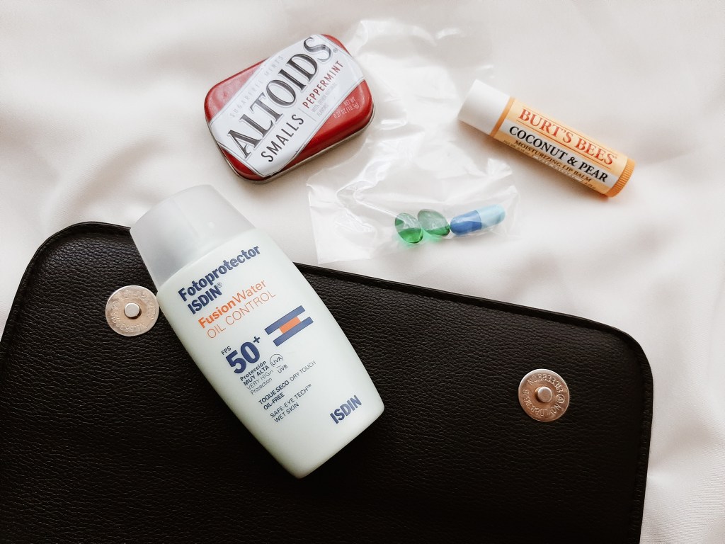 Llevo también mi bloqueador ISDIN. Desde que empezó la cuarentena dejé de usarlo a diario porque estoy en casa, y si hay que ir a comprar algo olvidaba ponerme. Normalmente recuerdo ponérmelo cuando estoy ya en mi carro, así que ahora lo llevo conmigo para aplicarlo. Antes rocío un poco de té sobre mi rostro para que la piel esté fresca.